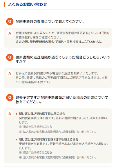 これまでに寄せられたお問い合わせ内容を元に、契約内容・更新・解約・家賃支払い等に関するFAQコーナーを新たに設置致しました。
