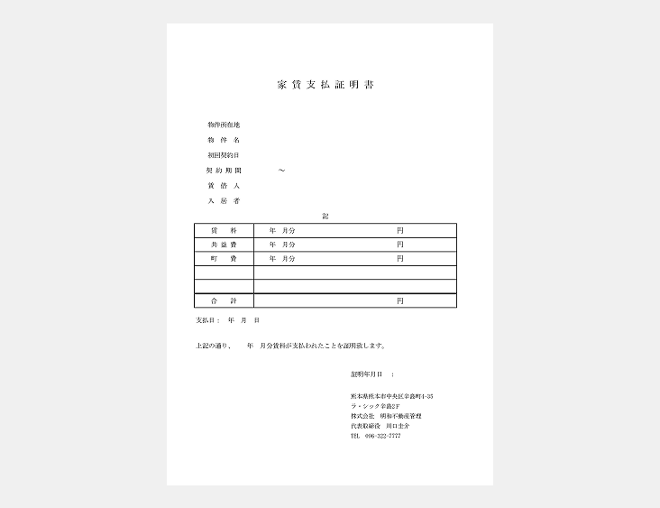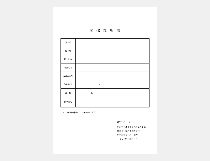 熊本・福岡・鹿児島で賃貸不動産管理を行っております「株式会社明和不動産管理」管理物件専用の証明書フォームです。